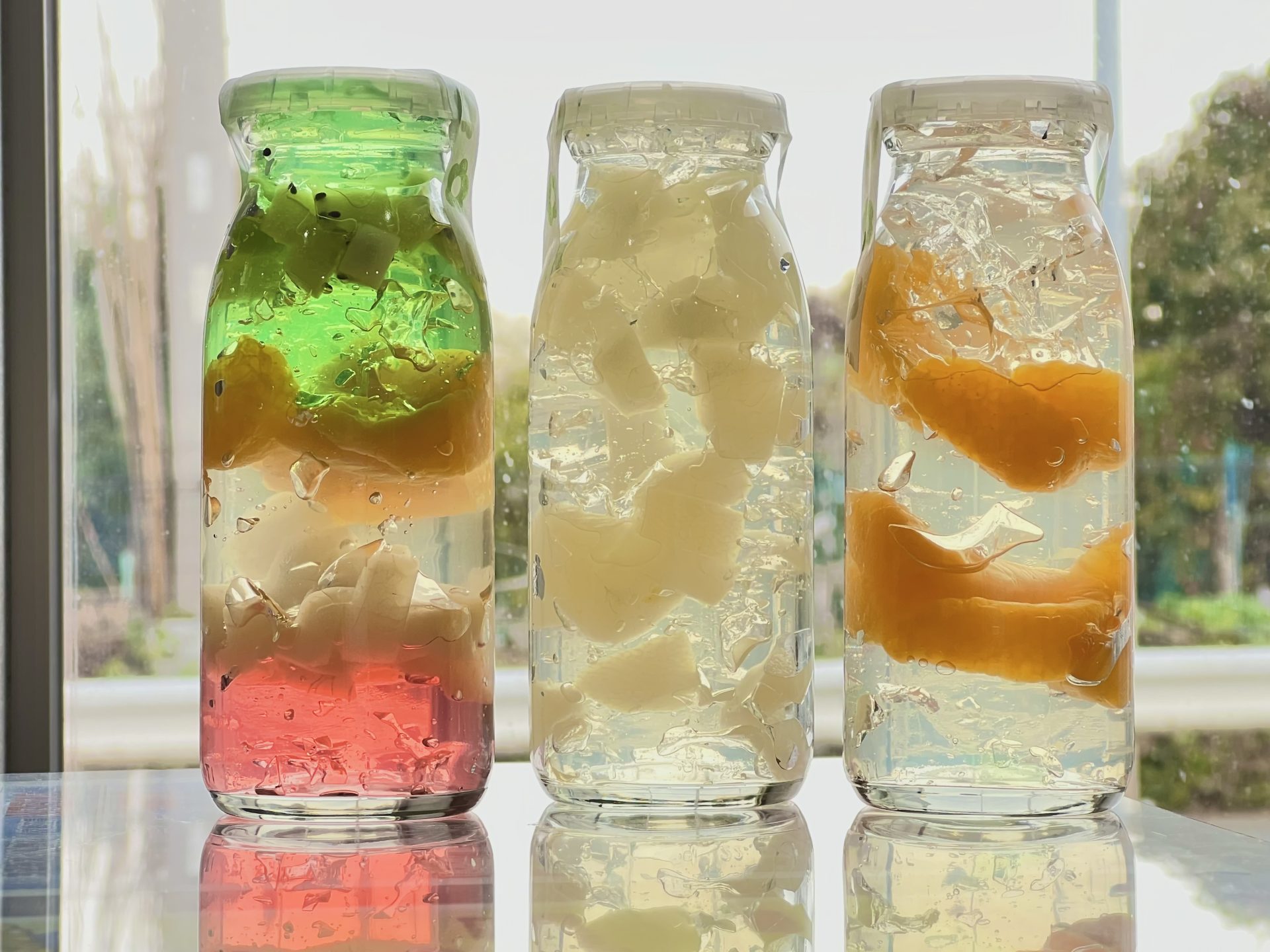 さて、CafeJBの新メニュー「フルーツジュレジュレ」はキウイ・もも・みかんの「くだものだから」「ももだもん」「みかんでしょ」の3種類。キラキラのレモンジュレとフルーツをお楽しみください。